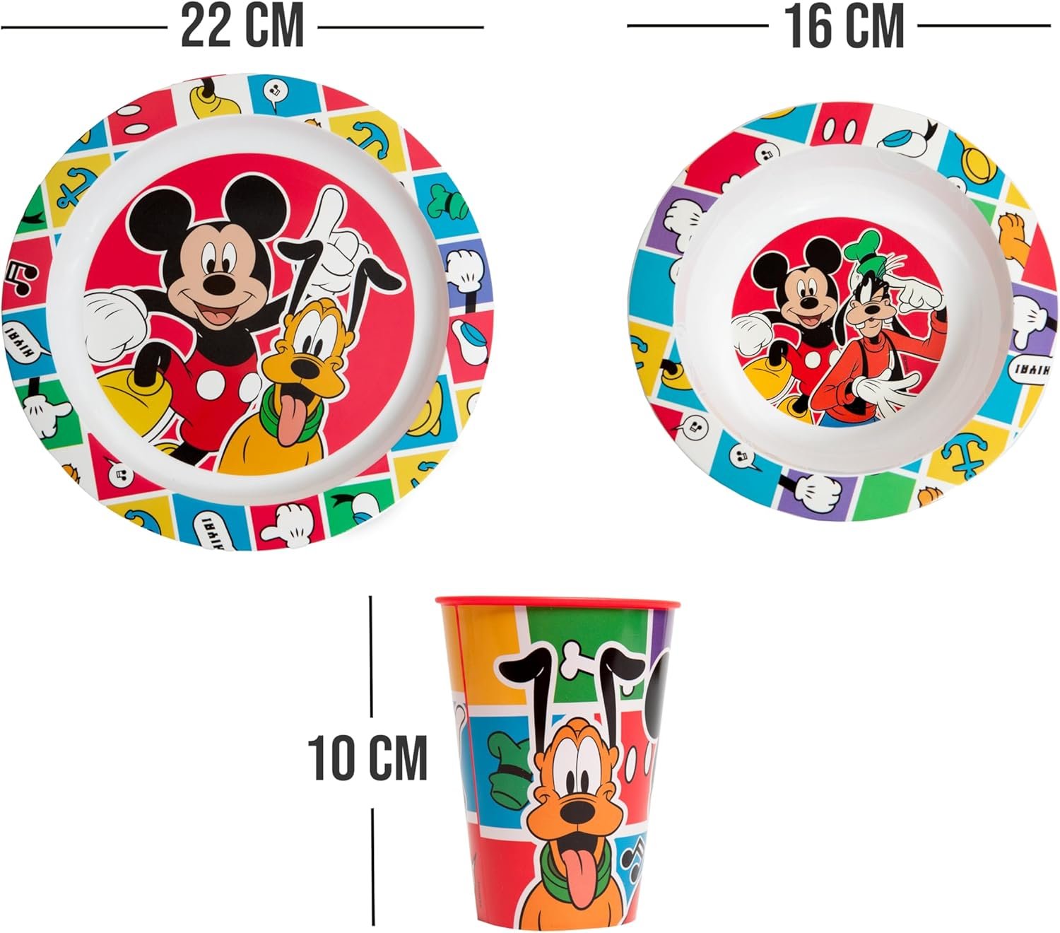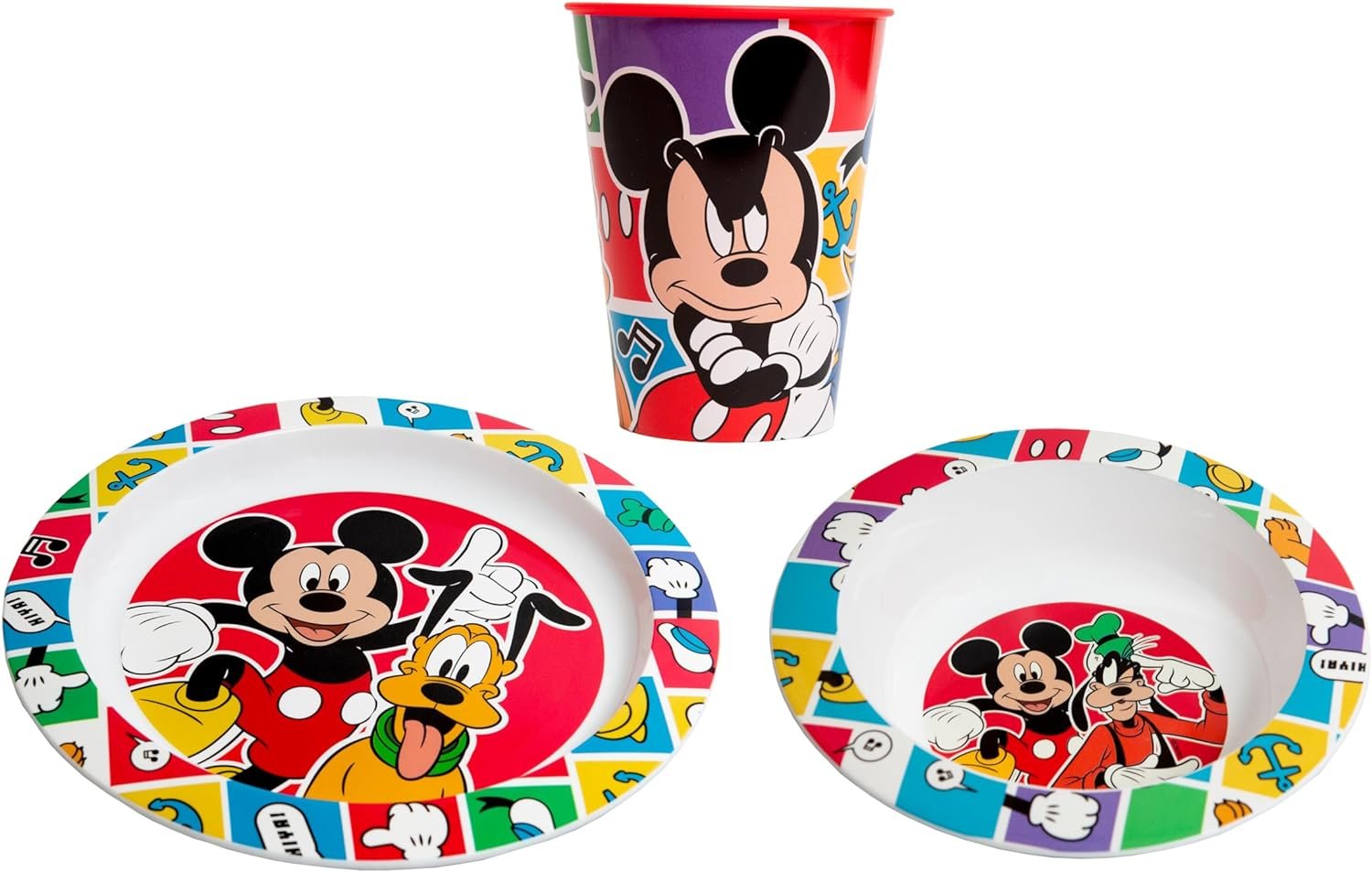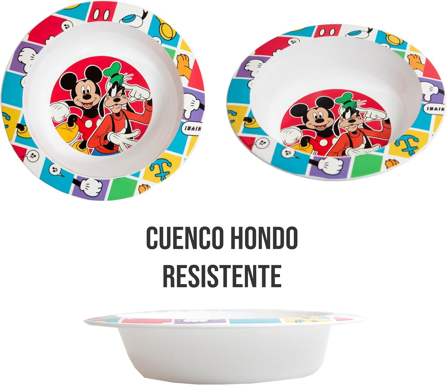 Precioso juego de vajilla de Mickey Mo Tu hijo ama Mickey Mouse? Entonces deja que nuestro juego de vajilla infantil te inspire en la vida cotidiana. Con el juego de vajilla de Mickey Mouse y los cubiertos correspondientes, tu hijo será fácil aprender la comida independiente con alegría y diversión. El juego de aprendizaje con el superhéroe Spider Man pondrá una sonrisa en la cara de tu hijo. Ya sea en excursiones con la familia como vajilla de camping para niños, en la guardería o en el jardín de infantes, como también para un picnic espontáneo, el juego de vajilla infantil garantiza un punto de atracción. Ideal como decoración de cumpleaños para la fiesta infantil de Mickey Mouse. Notas: – Vajilla apta para microondas (máx. 2 minutos a 600 W). – Apto para lavavajillas. Para niños a partir de 1 año. Los juegos de vajilla infantil no contienen BPA. Contenido del envío: juego de comida infantil de Mickey Mouse de 3 piezas. – Platos para niños. – Cuenco para niños – Vaso de plásti.